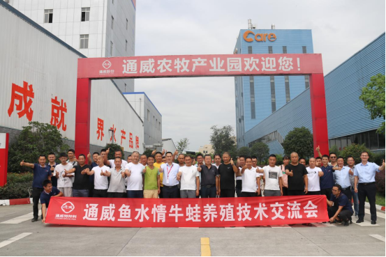 會上,通威特種料公司副總經(jīng)理李育強對各位養(yǎng)殖戶朋友的到來表示歡迎,并通過視頻和PPT向大家介紹特種料公司的基本信息。通威股份配方師馮鵬分享了《牛蛙營養(yǎng)需求》的主題報告,詳細講解了牛蛙在不同的生長階段、不同的養(yǎng)殖區(qū)域、不同的養(yǎng)殖模式對營養(yǎng)的需求。