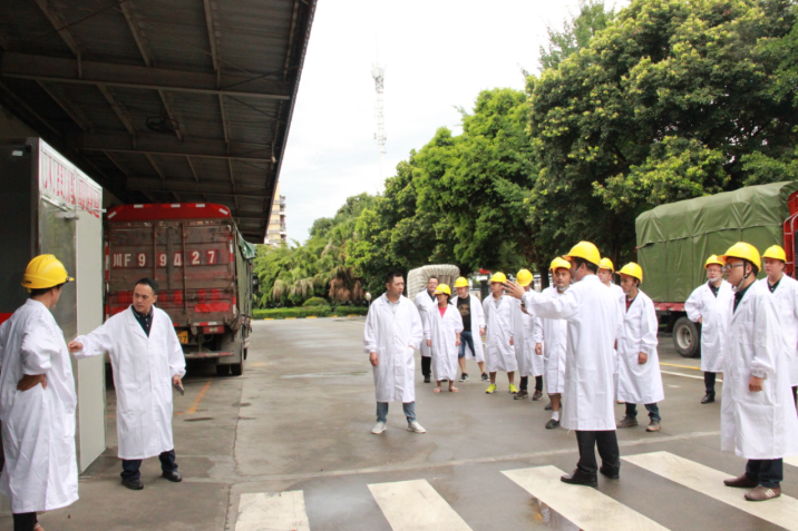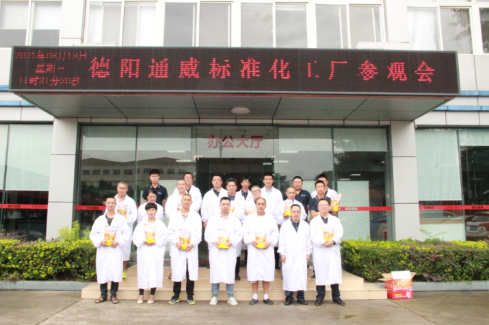 在德陽通威畜禽一部經理羅孝洪的帶領下,各大經銷商代表參觀了生產車間、成品庫房及總控室;車間和庫房是生物安全防控第一道防線,進入庫房車間前,羅經理帶領客戶一一通過消毒房進行全方位消毒,并對消毒作用進行了詳細講解;隨后,羅經理介紹車間標準化的生產管理流程、規范的成品庫房等,大幅提升了經銷商對經營通威品牌的信心和決心。
