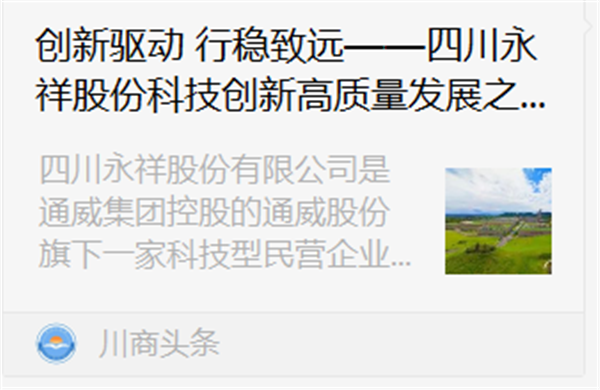 8月11日-14日,中國(guó)質(zhì)量觀察(中國(guó)質(zhì)量報(bào)客戶端)、中國(guó)環(huán)境(中國(guó)環(huán)境報(bào)客戶端)、縣域企業(yè)家、川商頭條等多家權(quán)威媒體以《創(chuàng)新驅(qū)動(dòng) 行穩(wěn)致遠(yuǎn)》為題,重磅聚焦永祥股份科技創(chuàng)新高質(zhì)量發(fā)展。