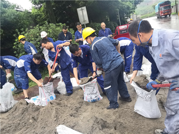 在各個部門負責人的安排下,急速召集各區域人力投入“戰斗”,在緊急情況下大家不慌不亂,明確分工,從買口袋、裝沙袋,到碼放沙袋、堵水,每一步都清晰明確,正當大家齊心協力鏟沙、扛沙包的時候,天公不作美,嘩嘩嘩的水把我們裝沙包的沙土浸透,給我們的裝填工作增加了難度??墒枪芾砀刹?、員工越挫越勇,伴著員工們“吱啦、吱啦”鏟著沙子,裝袋一刻也不停歇。所有扛著沙袋的人臉頰上都滴著水珠,這時我們早已分不清是汗水還是雨水,忙碌的奔波在這一條本來就不夠寬敞的道路上。經過一個多小時的忙碌,眼看就要將罐道填滿了,突然發現因罐子底部太深不能將沙袋均勻鋪滿。這時,一位瘦小的員工二話不說戴上安全帽在安全員的陪同下進入灌道開始了作業,10分鐘后,成功將未均勻鋪滿的沙袋全部處理完成。經過兩個小時的奮戰,在大家的共同努力下, 終于將入河總排口處堵住。