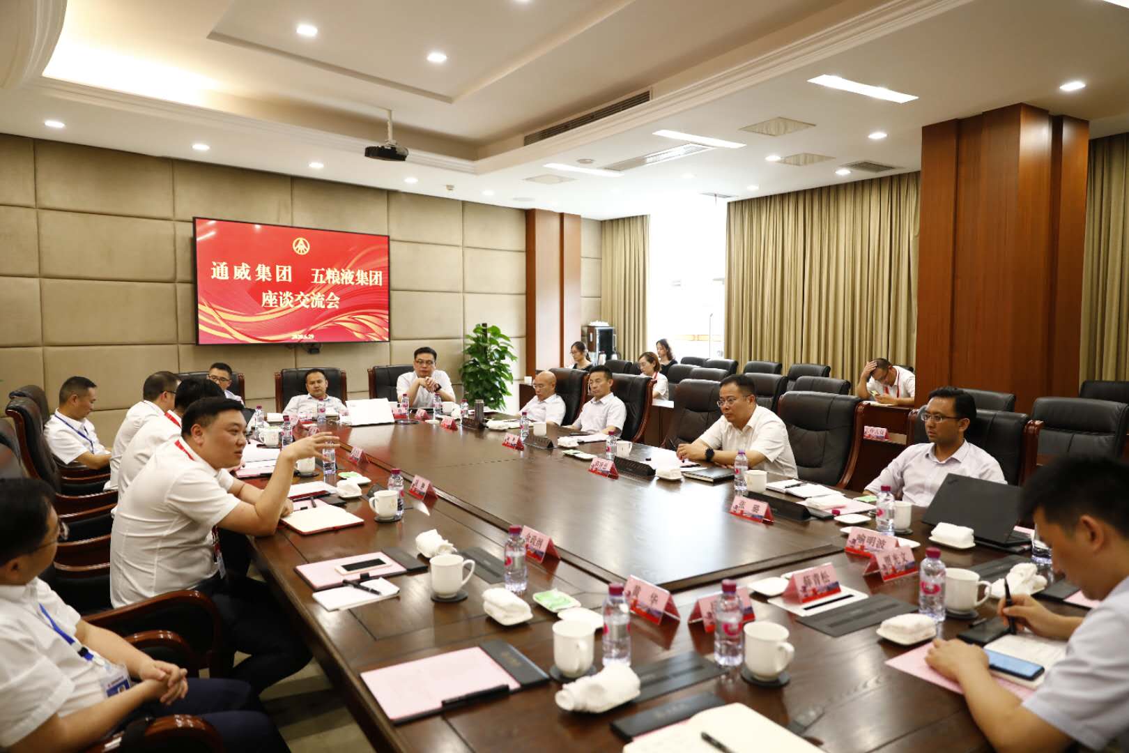 劉漢元主席對五糧液集團(tuán)管理團(tuán)隊的熱情接待表示感謝,并指出,近年來五糧液集團(tuán)在李曙光董事長帶領(lǐng)下開啟了“二次創(chuàng)業(yè)”新征程,公司各項改革穩(wěn)步推進(jìn)。過去三十余年,通威專注于實現(xiàn)水產(chǎn)品量的增長,未來三十年將著眼于提升產(chǎn)品質(zhì)量、品牌附加值以及用戶愉悅程度的高質(zhì)量發(fā)展。通威將繼續(xù)致力于打造全程可追溯的健康安全水產(chǎn)品品牌,同時作為當(dāng)前能源變革的重要推動力量參與全球競爭。希望雙方管理團(tuán)隊在討論交流中碰撞出火花,分享寶貴經(jīng)驗,共同提升企業(yè)管理水平,攜手助推社會經(jīng)濟(jì)的高質(zhì)量發(fā)展。