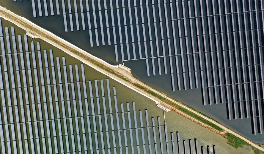 圖為6月14日拍攝的通威唐山“漁光一體”現(xiàn)代漁業(yè)產(chǎn)業(yè)園。新華社記者 牟宇攝