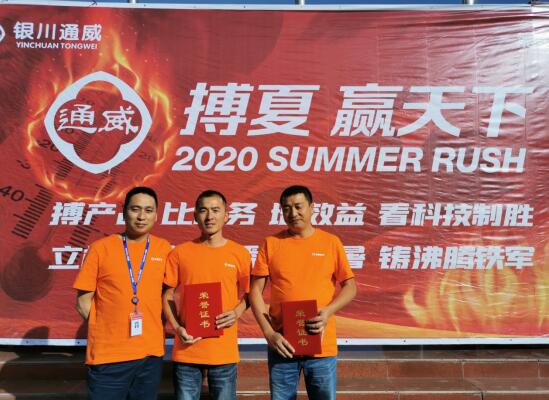 “搏夏”活動對銀川通威2020年1至5月表現優異的市場員工進行了現場表彰。優秀的團隊,離不開每位團隊成員的努力拼搏。在公司領導的帶領下,銀川通威全體將士上臺進行宣誓,喊出了銀川通威人完成2020年目標的決心和斗志。