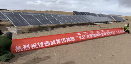 作為全球綠色農業與綠色能源的領軍企業,38年來,通威積極履行社會責任,推動自然環境保護和人類可持續發展。在十一屆全國政協常委、全國人大代表、通威集團董事局劉漢元主席的高度重視下,通威于2018-2020年三度挺進青藏高原。2018年,通威向“青藏綠色驛站”公益捐贈三套離網光伏發電系統;2019年,通威向班德湖野生動物觀測站捐贈十余套離網光伏發電系統;2020年,通威為長江源水生態環境保護站及其附屬的驛站供電捐建30KW離網光伏發電系統,始終為點亮世界屋脊不懈努力!