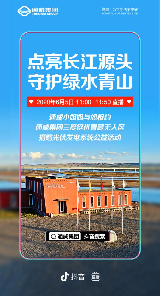 “點(diǎn)亮長江源頭 守護(hù)青山綠水——通威集團(tuán)三度挺進(jìn)青藏?zé)o人區(qū),光伏系統(tǒng)發(fā)電公益捐贈(zèng)儀式,將于明日上午11:00-11:50在抖音進(jìn)行海拔4540米的直播,進(jìn)入抖音平臺(tái),直接搜索#通威集團(tuán)#即可觀看,敬請(qǐng)期待!