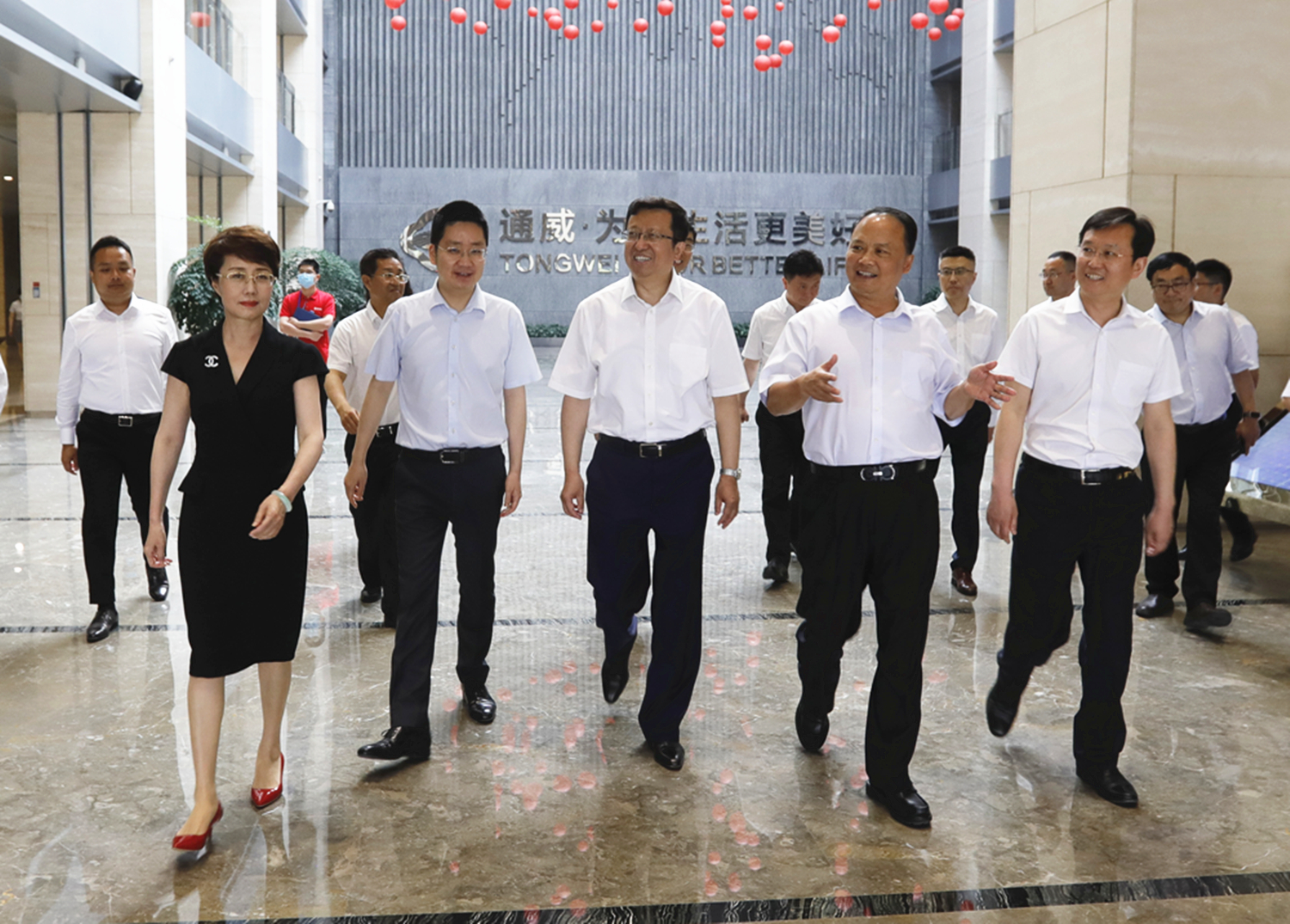 5月6日,眉山市委書記慕新海,市委副書記、市政府市長胡元坤,市委副書記、天府新區眉山黨工委書記黃劍東,市政府副市長唐宏、孫劍一行蒞臨通威考察。十一屆全國政協常委、全國人大代表、通威集團董事局劉漢元主席,通威集團禚玉嬌總裁,通威股份董事長謝毅,通威集團副總裁管亞偉熱情接待。