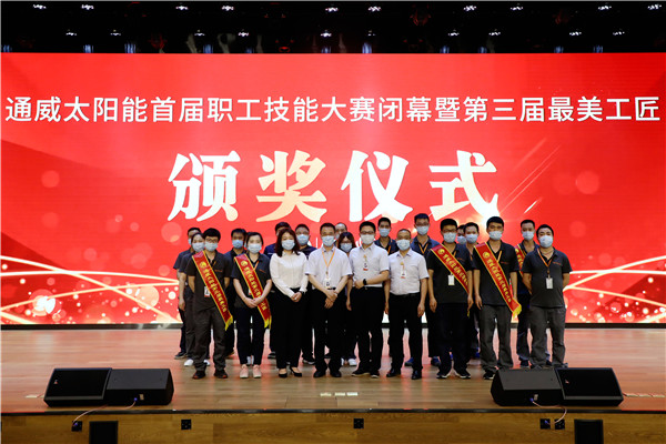 青春由磨礪而出彩,人生因奮斗而升華。5月4日,通威太陽能成都公司舉辦首屆職工技能大賽閉幕式暨第三屆“最美工匠”頒獎儀式,以“最美工匠”為標桿示范,以“紅色聚能家”為精神引領,推動企業高質量發展。通威太陽能成都公司總經理謝泰宏,通威太陽能副總經理楊文棟,通威太陽能成都公司工會女職工委員會主任羅曉云出席,共計140余人參加頒獎儀式。
