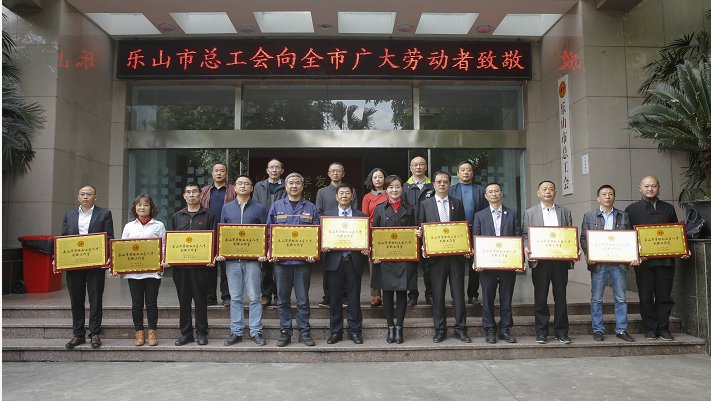 儀式上,樂山市總工會黨組成員、副主席蘭寧宣讀《四川省總工會女職工委員會關于表揚“同心戰役”最美女職工集體和個人的決定》《四川省總工會關于表揚四川省五一巾幗標兵崗(標兵)的決定》,并為獲獎單位和個人頒獎。市總工會黨組成員、副主席張雷宣讀《樂山市總工會關于命名樂山市勞模和工匠人才創新工作室的決定》,并為創新工作室領銜人代表授牌。永祥樹脂副總工程師杜亦軍及團隊現場接受授牌。