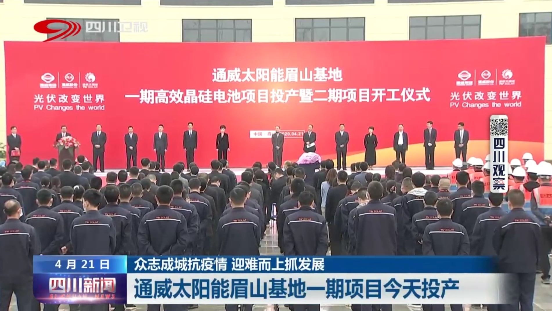 4月21日,通威太陽能眉山公司一期高效晶硅電池項(xiàng)目投產(chǎn)暨二期項(xiàng)目開工儀式隆重舉行。投產(chǎn)暨開工儀式,受到中央廣電總臺(tái)國(guó)際在線、人民網(wǎng)、中國(guó)新聞社、四川電視臺(tái)、川報(bào)觀察、《眉山日?qǐng)?bào)》、眉山電視臺(tái)、黑鷹光伏、索比光伏網(wǎng)、PV-Tech、SOLARZOOM、能源一號(hào)等80余家央級(jí)權(quán)威媒體、省市主流媒體、行業(yè)媒體連續(xù)兩天強(qiáng)勢(shì)聚焦,通過文字、圖片、新媒體等豐富形式,展現(xiàn)儀式盛況,點(diǎn)贊“通威速度”。