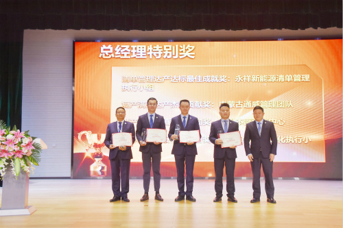 大會(huì)對(duì)榮獲2019年度安全隱患排查能手、安全環(huán)保先進(jìn)個(gè)人和部門(mén)、清單管理優(yōu)秀個(gè)人和團(tuán)隊(duì)、講用活動(dòng)積極分子、企業(yè)文化先進(jìn)團(tuán)隊(duì)、優(yōu)秀通訊員、優(yōu)秀班長(zhǎng)、優(yōu)秀班組、降本增效突出貢獻(xiàn)個(gè)人和團(tuán)隊(duì)、阿米巴優(yōu)秀個(gè)人和團(tuán)隊(duì)、年度優(yōu)秀團(tuán)隊(duì)、先進(jìn)個(gè)人和十佳標(biāo)兵等獎(jiǎng)項(xiàng)進(jìn)行了隆重表彰;永祥新能源、內(nèi)蒙古通威高純晶硅、永祥股份營(yíng)銷(xiāo)中心、永祥股份企業(yè)文化執(zhí)行小組榮獲“清單管理達(dá)產(chǎn)達(dá)標(biāo)最佳成就獎(jiǎng)”、“復(fù)產(chǎn)滿產(chǎn)達(dá)產(chǎn)杰出貢獻(xiàn)獎(jiǎng)”、“滿產(chǎn)滿銷(xiāo)價(jià)值營(yíng)銷(xiāo)功勛獎(jiǎng)”、“企業(yè)文化建設(shè)特別榮譽(yù)獎(jiǎng)”,段董為獲獎(jiǎng)團(tuán)隊(duì)頒發(fā)“總經(jīng)理特別獎(jiǎng)”,優(yōu)秀員工及優(yōu)秀團(tuán)隊(duì)代表現(xiàn)場(chǎng)分享了獲獎(jiǎng)感言。