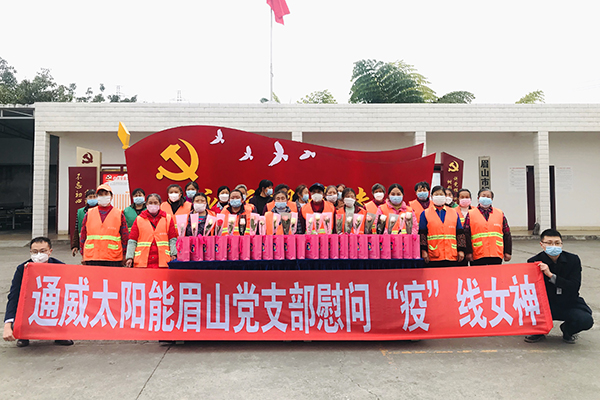 三月的初春,春暖花開,第110個(gè)“三八”國(guó)際婦女節(jié)伴著春的步履悄然來(lái)臨,作為通威太陽(yáng)能黨工建設(shè)與公司發(fā)展相融合的創(chuàng)新結(jié)晶,“紅色聚能家”積極發(fā)揮黨建引領(lǐng)作用,依托工會(huì)平臺(tái),于3月6日組織合肥、成都、眉山三地志愿者開展了關(guān)愛“疫線女神”三八國(guó)際婦女節(jié)慰問活動(dòng)。