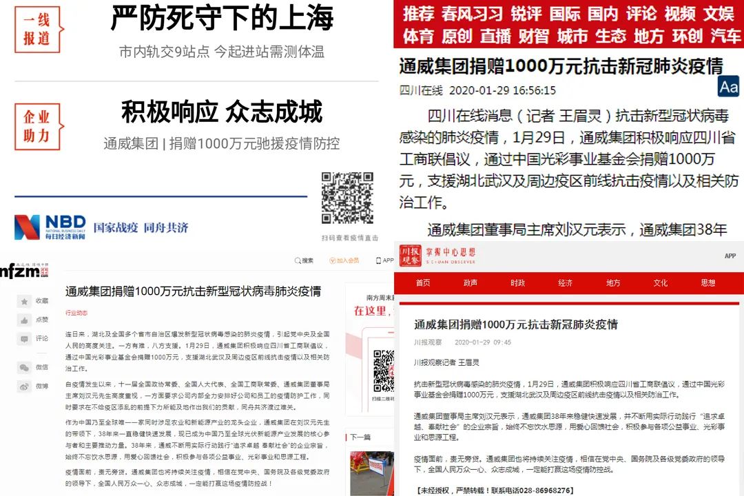 逾百家媒體高度評(píng)價(jià)通威捐贈(zèng)1000萬(wàn)助力疫情抗擊