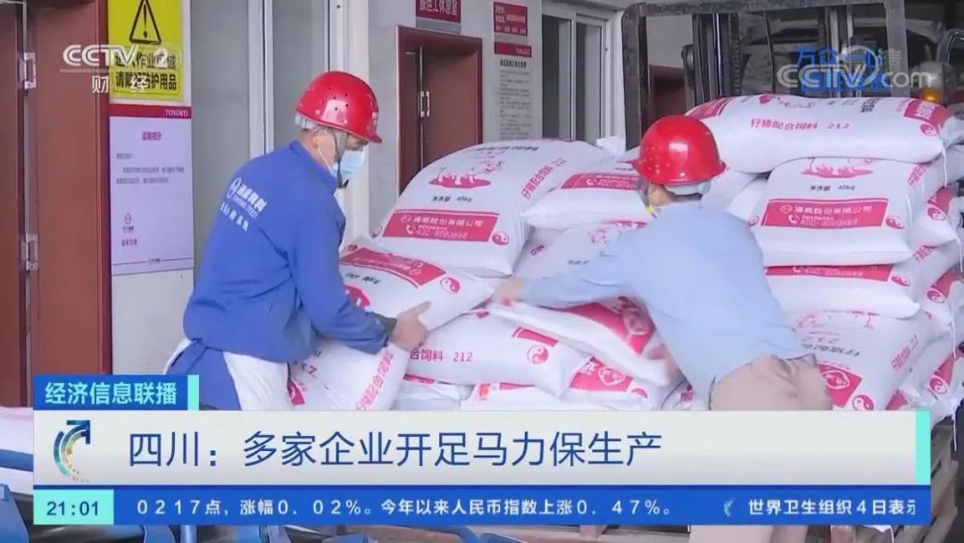 央視二套《經(jīng)濟(jì)信息聯(lián)播》報(bào)道四川通威飼料復(fù)工生產(chǎn)情況
