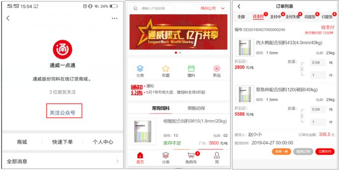 同時,為防止病毒交叉感染,目前通威股份各公司建議用戶使用通威一點通網上訂貨系統(tǒng),通過飼料在線訂貨商城從網上下單,減少疫情傳播風險。