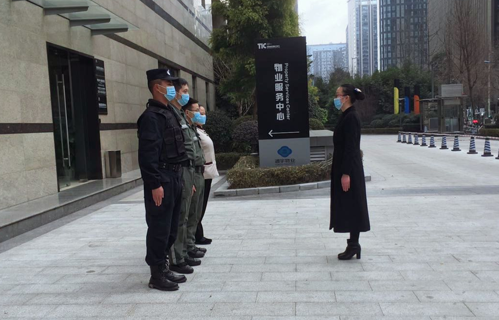 通威國(guó)際中心物業(yè)對(duì)進(jìn)出大樓人員進(jìn)行體溫測(cè)量,嚴(yán)加防控