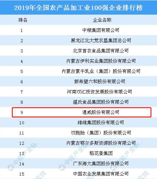 通威榮列2019年全國農(nóng)產(chǎn)品加工業(yè)百強(qiáng)企業(yè)