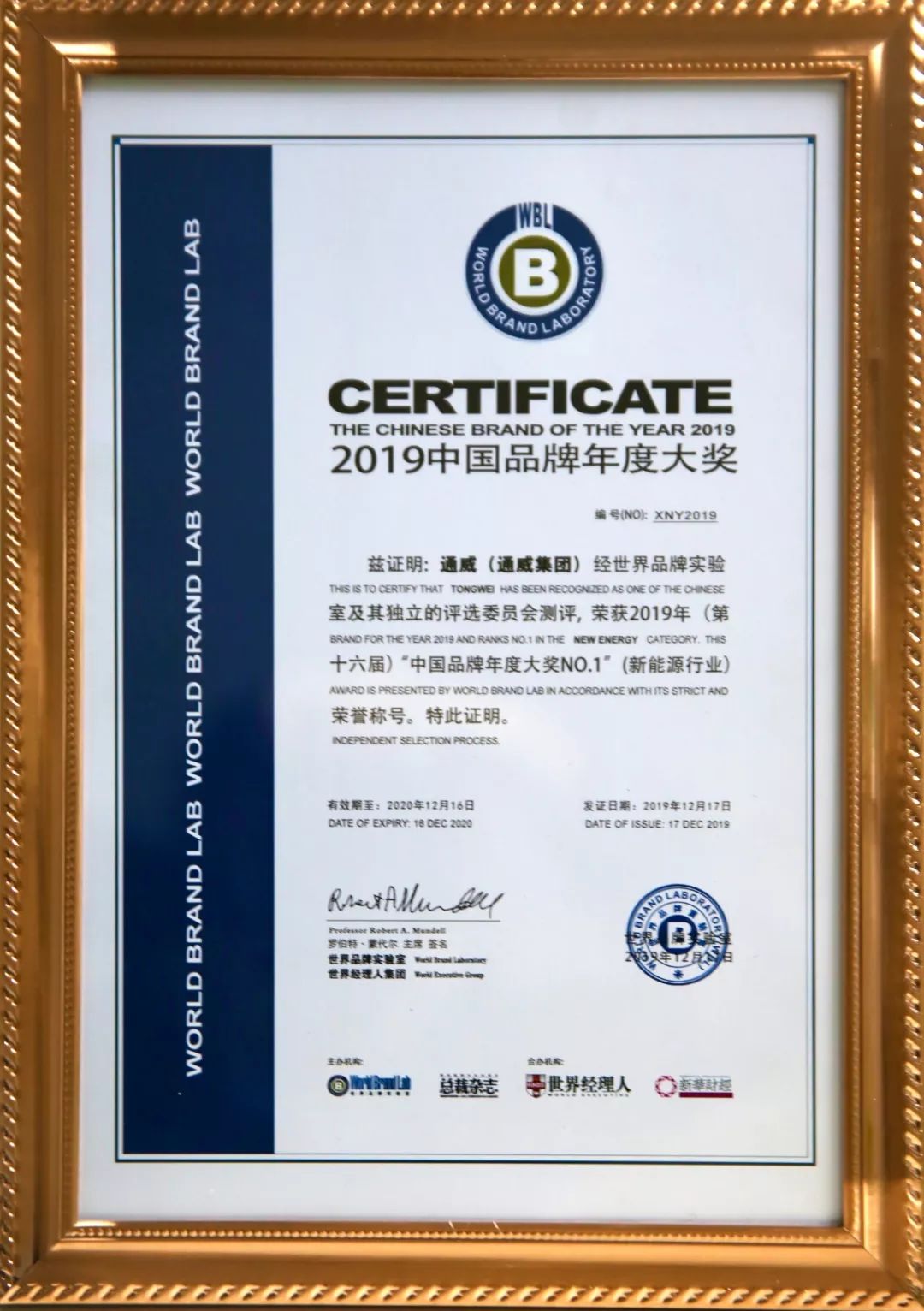 12月17日,被譽(yù)為“中國(guó)品牌奧斯卡”的2019中國(guó)品牌年度大獎(jiǎng)?lì)C獎(jiǎng)盛典在京隆重召開(kāi),本次盛會(huì)由世界經(jīng)理人雜志和世界品牌實(shí)驗(yàn)室主辦,華為等35個(gè)活躍在2019年度中國(guó)經(jīng)濟(jì)舞臺(tái)的領(lǐng)軍品牌入選“2019中國(guó)品牌年度大獎(jiǎng)”。憑借新能源產(chǎn)業(yè)的穩(wěn)健快速發(fā)展,通威集團(tuán)榮獲2019“中國(guó)品牌年度大獎(jiǎng)NO.1” (新能源行業(yè)),歐洲工商管理學(xué)院學(xué)術(shù)院長(zhǎng)、首席教授齊夫·卡門(mén)博士(Ziv Carmon)、哥倫比亞大學(xué)商學(xué)院教授和管理系主任亞當(dāng)·格林斯基(Adam Galinsky)出席會(huì)議并為獲獎(jiǎng)品牌頒獎(jiǎng)。