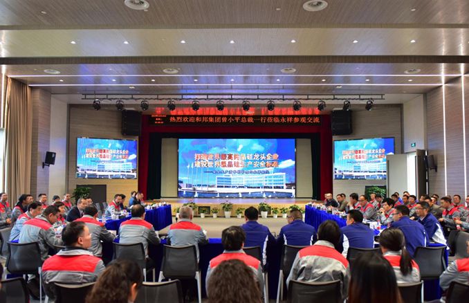 近日,和邦集團總裁曾小平、副總裁鄧崇進以及相關部門管理層、各級骨干成員一行90余人蒞臨永祥股份參觀交流。通威股份董事、永祥股份董事長兼總經理段雍,永祥股份副總經理李斌、杜炳勝等領導熱情接待。