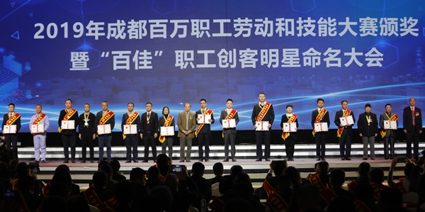 12月13日,“2019成都·職業(yè)技能邀請賽”閉幕式暨勞動和技能競賽頒獎大會在中國西部國際博覽城隆重舉行,大會為2019成都·職業(yè)技能邀請賽、2019成都百萬職工勞動和技能大賽、五一勞動獎?wù)隆⑽逡粍趧营劆睢⒐と讼蠕h號、第二屆百佳職工創(chuàng)客明星獲獎?wù)哳C獎。成都市委常委、統(tǒng)戰(zhàn)部部長、市總工會主席吳凱出席,通威股份董事長謝毅榮獲成都市“五一勞動獎?wù)隆辈⒋沓啥际兴形逡粍趧营務(wù)隆⑽逡粍趧营劆詈凸と讼蠕h號獲得者發(fā)言。