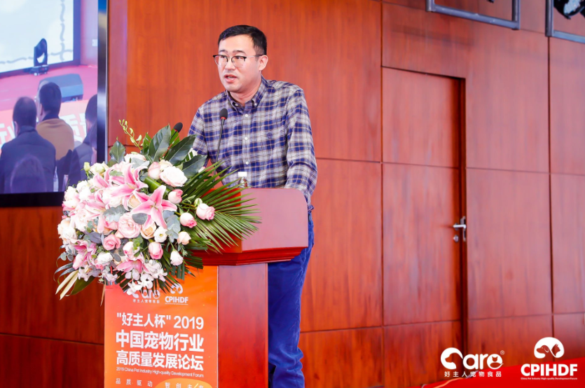 成都好主人寵物食品有限公司總經理楊洪海作主題演講。楊總表示,全國城鎮(農村未統計在內)寵物犬貓已達到9915萬只,國內寵物犬貓市場消費規模已突破2000億大關。