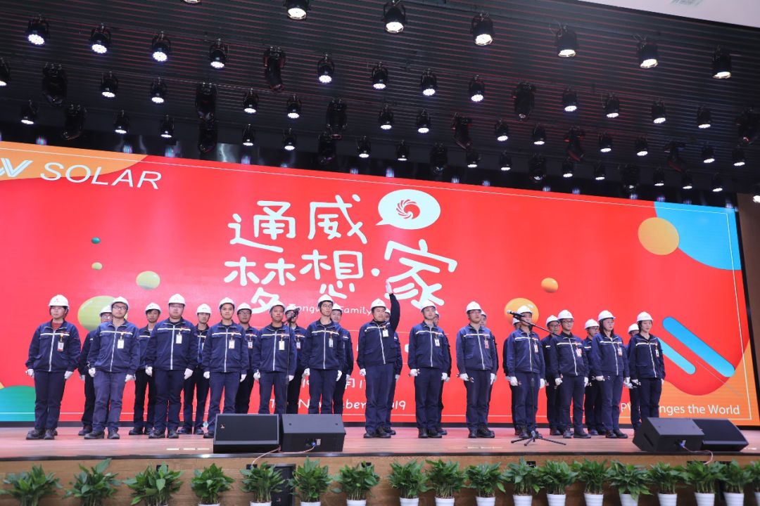 文藝匯演現(xiàn)場,謝毅董事長代表通威集團劉漢元主席、通威股份和通威太陽能向全體員工6年來的辛勤付出表示最衷心的感謝,向通威家屬親人們的理解和支持表示最誠摯的謝意。他指出,成績?nèi)〉秒x不開有理想、有抱負的光伏人堅持不懈的努力,更離不開每一個通威人背后的家庭的默默支持,通威文化向來倡導關愛員工、呵護家庭。