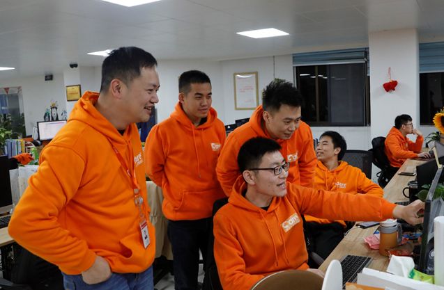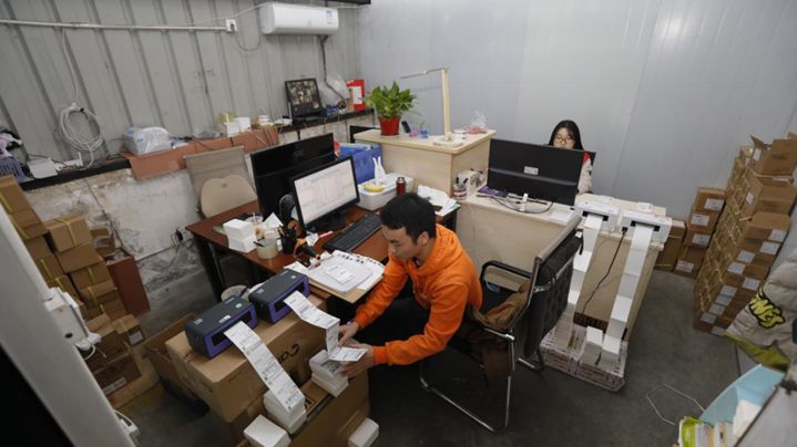 與此同時,另一邊的物流部也在凌晨3點開始打單;從客服、打單到貨物搬運、裝卸等崗位順暢運轉著,有條不紊地忙碌著。