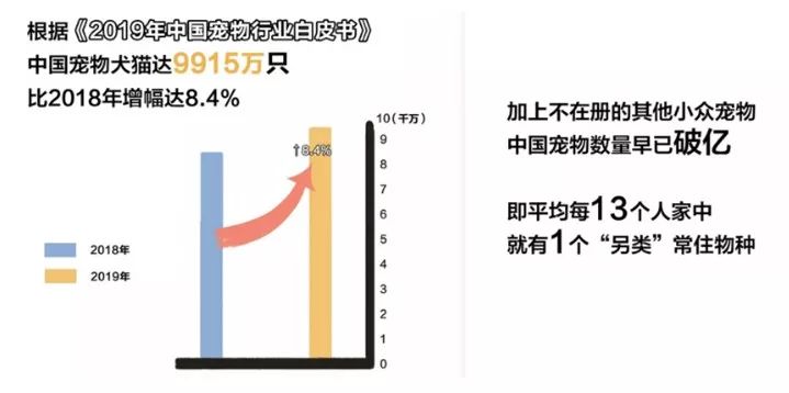 近年來(lái),身邊吸貓擼狗的人越來(lái)越多,中國(guó)寵物市場(chǎng)有多火?《2019年中國(guó)寵物行業(yè)白皮書(shū)》數(shù)據(jù)顯示,今年全國(guó)城鎮(zhèn)寵物犬貓數(shù)量已有近1億只,消費(fèi)市場(chǎng)規(guī)模預(yù)計(jì)將達(dá)到2024億元。隨著消費(fèi)力的持續(xù)增長(zhǎng),城市老齡化、少子化、晚婚化等現(xiàn)象的加劇,中國(guó)寵物行業(yè)將迎來(lái)萬(wàn)億級(jí)藍(lán)海市場(chǎng)!