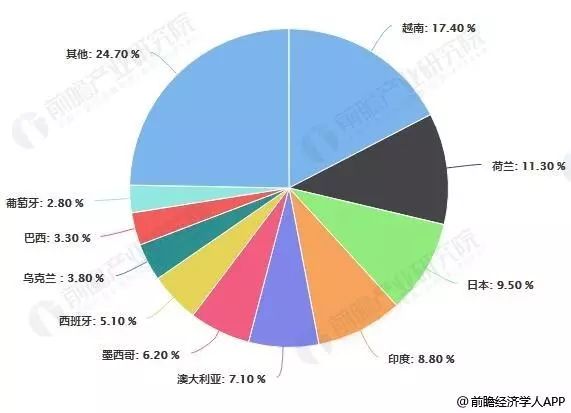 隨著歐洲市場復蘇,2019年上半年出口到荷蘭、西班牙、烏克蘭、葡萄牙、德國、比利時的組件明顯增加。此外,越南超越印度成為中國光伏產品出口第一大市場,主要原因在于越南總理簽發關于在越南發展太陽能發電項目鼓勵機制的決定。