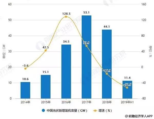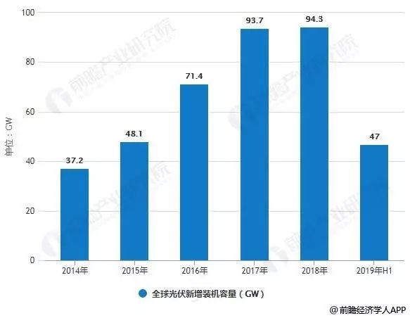 2013-2019年H1全球光伏新增裝機容量統計情況
