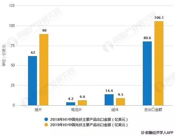 2018-2019年H1中國光伏主要產品出口金額統計情況