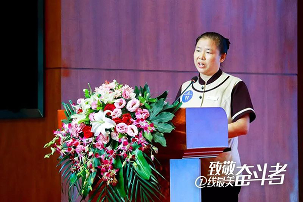 “演講比賽其實(shí)也是想挑戰(zhàn)一下自己,所以我演講的主題就是‘敢于挑戰(zhàn),堅(jiān)持奔跑’。挑戰(zhàn)自己能不能上這個(gè)舞臺(tái),是不是真的上了舞臺(tái)就不敢說了?!痹谡劶把葜v比賽時(shí),李茂群說,演講稿的內(nèi)容她就是實(shí)事求是地寫,內(nèi)容都是她作為一線保潔員的真實(shí)感受?!捌鋵?shí)團(tuán)隊(duì)里每個(gè)人、每天都在做同樣的事情,大家都是一樣的心態(tài),只是他們沒有表達(dá)出來?!?/p> 記者手記:成功屬于堅(jiān)持奔跑的人 本以為李茂群對(duì)自己工作的描述應(yīng)該充滿了臟亂、辛苦、疲累等關(guān)鍵詞,但令人意外的是,47歲的李茂群充滿活力,身上充盈著一股樂觀向上的正能量。每當(dāng)和她談及工作的細(xì)節(jié)和工作狀態(tài)時(shí),她都熱情洋溢、滔滔不絕,而自己在工作中遇到的困難卻鮮有提及,始終兢兢業(yè)業(yè)地面對(duì)。在她看來,所有的挑戰(zhàn),都是一種成長(zhǎng),一種磨練。 從一個(gè)普普通通的保潔員到環(huán)境部主管,從一個(gè)默默無聞的一線員工到贏得公司演講比賽第一,李茂群“一錘一鑿地敲打自己,雕刻自己”,雖然“雕刻的過程很痛”,但是她明白,“只有經(jīng)過了痛苦的自我雕刻才能收獲更好的自己”。事實(shí)上,李茂群所雕琢的,不僅僅是更好的自己,更為全體通威人塑造了一座充滿正能量的精神圖騰。李茂群在通宇物業(yè)演講比賽中的一段話就是對(duì)這座精神圖騰最好的注腳:“努力吧!享受每一個(gè)雕琢的過程,盡量細(xì)致,慢慢收獲一個(gè)精致、完美的自己。每一次成功,都必須是汗水澆灌而成,成功永遠(yuǎn)屬于堅(jiān)持奔跑的人!”