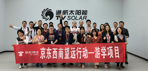 9月26日,京東物流代表一行蒞臨通威太陽能成都公司參觀,通威太陽能相關部門負責人與光伏學院老師熱情接待并出席交流活動。