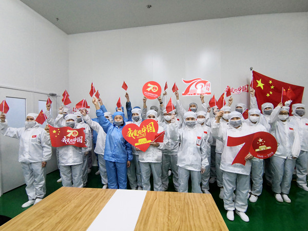 為慶祝中華人民共和國成立70周年,10月1日,通威太陽能合肥、成都兩地組織開展了內(nèi)容豐富、形式多樣的系列文化活動(dòng),積極營造節(jié)日氛圍,廣泛凝聚奮斗力量,激發(fā)全體職工愛國熱情,向新中國成立70周年獻(xiàn)禮。