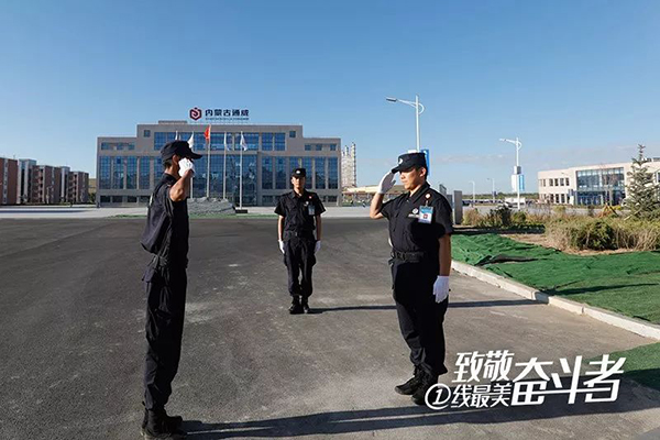 秋季的包頭,清晨7:00就太陽當空照,燦爛得讓人睜不開眼睛,耳旁是大風呼嘯的聲音。在公司升旗臺邊,通宇物業(yè)內(nèi)蒙古通威高純晶硅項目主管魏志龍帶領著隊伍已準時集合,筆挺列隊。這是魏志龍一天工作的開始。每天清晨的早間會是工作慣例,總結前一天并溝通當天工作要點。“今天有場A級接待,大家提前準備”、“2號崗需要2個人”、“昨晚風大,3輛觀光車要徹底清理,肯定有不少沙”…… 早晨的陽光照射在黑色帽檐下他黝黑的臉龐,魏志龍用被風吹得干澀的嘴巴事無巨細地交代著工作要點。