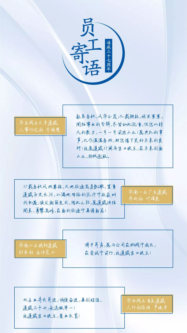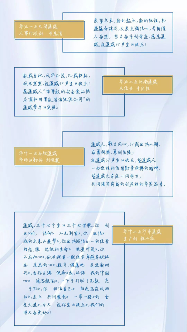 值此通威三十七歲生日之際,來自全球各地的通威農(nóng)牧員工紛紛獻(xiàn)上生日祝福,祝愿通威明天更美好!未來,農(nóng)牧板塊全體將士將繼續(xù)迎難而上、砥礪奮進(jìn),向著打造“世界級健康安全食品供應(yīng)商”的宏偉目標(biāo)闊步邁進(jìn)!