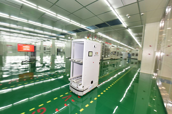 在車間里勤勞跑動的是這個“小房子”,可別小看它。作為一個自動化的機器人,它負責上料下料,在車間內忙碌地來回穿梭,還會聰明地避讓行人。