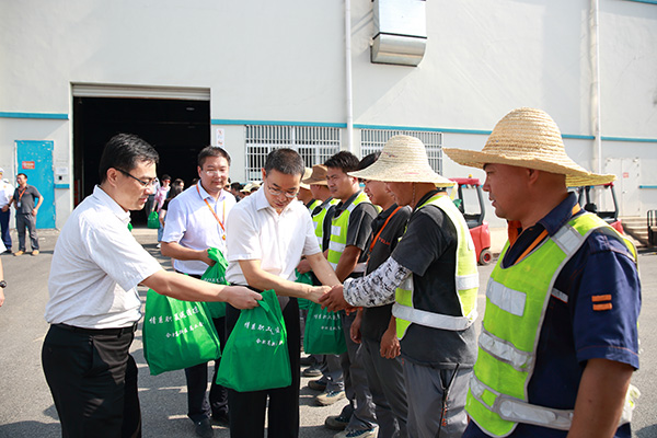 慰問活動中,宋道軍主任與每一位戶外工作員工親切交談并握手,親自將慰問品送到他們手中,了解戶外工作員工的身體情況和工作情況,并致以深深的敬意,感謝他們為公司付出的辛勤汗水,為社會帶來的奮斗精神?!案邷靥鞖夤ぷ鞔_實挺辛苦的,但有領導們的關懷和慰問,再難再艱辛我們也一定能克服”,計劃部一位叉車作業員感激地說道。