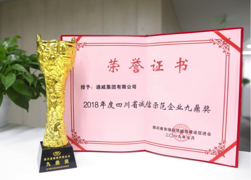 此次評選按照《四川省誠信示范企業(yè)評選管理辦法》要求,經省級有關部門、科研機構、大專院校專家嚴格評審,最終授予通威集團及通威旗下通威太陽能(成都)有限公司、四川永祥股份有限公司等738家企業(yè)“四川省誠信示范企業(yè)”稱號。此外,通威集團榮膺全場最重磅獎項“四川省誠信示范企業(yè)九鼎獎”,一同獲獎的還有四川省宜賓五糧液集團有限公司等8家四川知名企業(yè)。