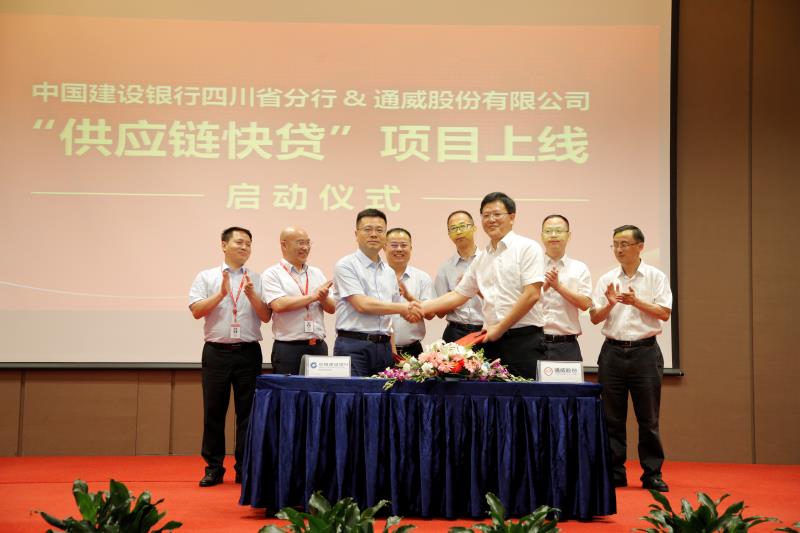 通威股份郭異忠總裁表示,為探索解決“三農”融資難、融資貴的難題,從2006年起,通威依托多年服務農村市場積累下的寶貴經(jīng)驗,探索并形成了適合農村金融市場特點、符合農民發(fā)展愿望、成熟可控的產業(yè)鏈融資模式。本次啟動儀式標志著建設銀行第一個涉農“供應鏈快貸”創(chuàng)新項目在通威正式落地運行。 該項目經(jīng)過上線測試,申貸過程簡捷高效,操作靈活簡便,客戶體驗較好,能有效解決農業(yè)產業(yè)鏈各環(huán)節(jié)客戶區(qū)域分散、額度小、頻次高的痛點。該項目的正式啟動,將是雙方資源共享、優(yōu)勢互補、互利雙贏的開始,希望雙方以此為契機,開展更深層次、更廣泛的合作,為推動我國農業(yè)的高質量發(fā)展作出更大貢獻。