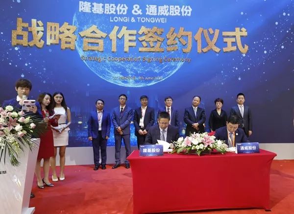 通威股份與隆基股份戰(zhàn)略合作簽約儀式現(xiàn)場(chǎng)
