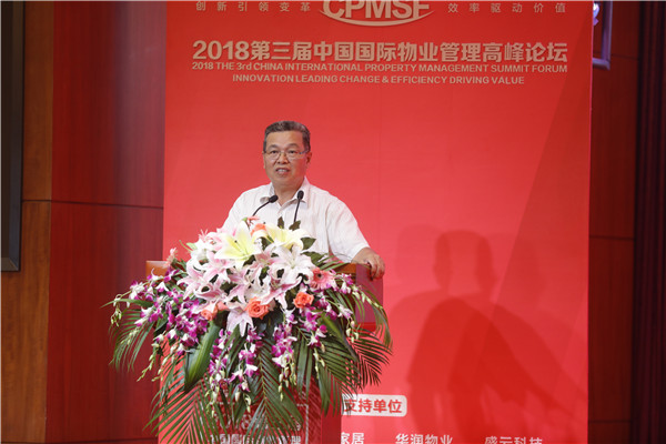 第三屆中國國際物業(yè)管理高峰論壇上,中國物業(yè)管理協(xié)會會長沈建忠講話