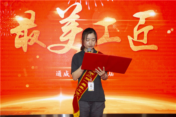 頒獎活動現場,“最美工匠”們在掌聲中身披綬帶登上領獎臺,被授予榮譽獎杯、榮譽證書及現金獎勵。兩地“最美工匠”代表潘雪、何慧分別發表感言,他們表示在今后的工作中將再接再厲,不斷學習新知識,掌握新技能,提高作業水平,為公司做出新的貢獻。