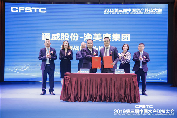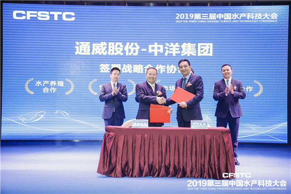 16時(shí)50分,在劉漢元主席、謝毅董事、錢曉明董事長等領(lǐng)導(dǎo)的見證下,通威股份郭異忠總裁分別與湖南漁美康生物技術(shù)集團(tuán)有限公司總裁劉紹春、江蘇中洋集團(tuán)股份有限公司常務(wù)副總裁朱永祥代表的兩家企業(yè)簽署了《通威-漁美康簽署戰(zhàn)略合作協(xié)議》、《通威-中洋簽署戰(zhàn)略合作協(xié)議》,攜手共促我國水產(chǎn)科技創(chuàng)新,推動(dòng)行業(yè)邁入高質(zhì)量發(fā)展軌道!