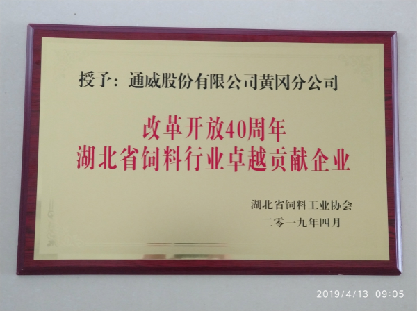 會議期間,協會對推動湖北飼料工業高質量發展的一批優秀企業進行現場表彰,經參選單位激烈角逐及專家組綜合評定,通威股份華中二區四家公司脫穎而出,斬獲四項殊榮。其中,天門通威榮膺“改革開放40周年湖北省飼料行業最具成長型企業”稱號,武漢通威、沙市通威、黃岡通威榮膺“改革開放40周年湖北省飼料行業卓越貢獻企業”。