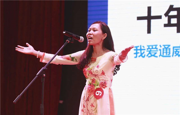來自越南的阮氏泉身著奧黛,講述與通威的十年情誼