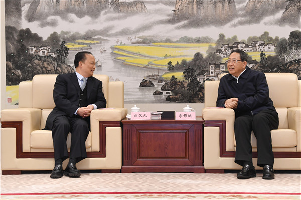 2019年1月8日,安徽省委書記、省人大常委會主任李錦斌在合肥會見十一屆全國政協常委、全國人大代表、通威集團董事局劉漢元主席并座談。
