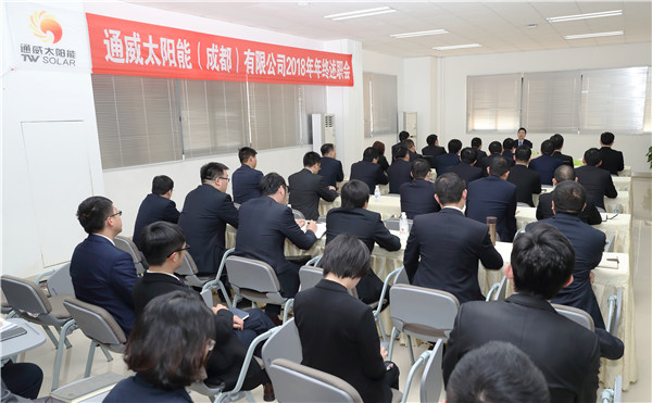近日,通威太陽能2018年度述職大會暨總結大會分別于合肥、成都兩地公司順利召開,通威太陽能董事長謝毅及高管團隊出席會議。