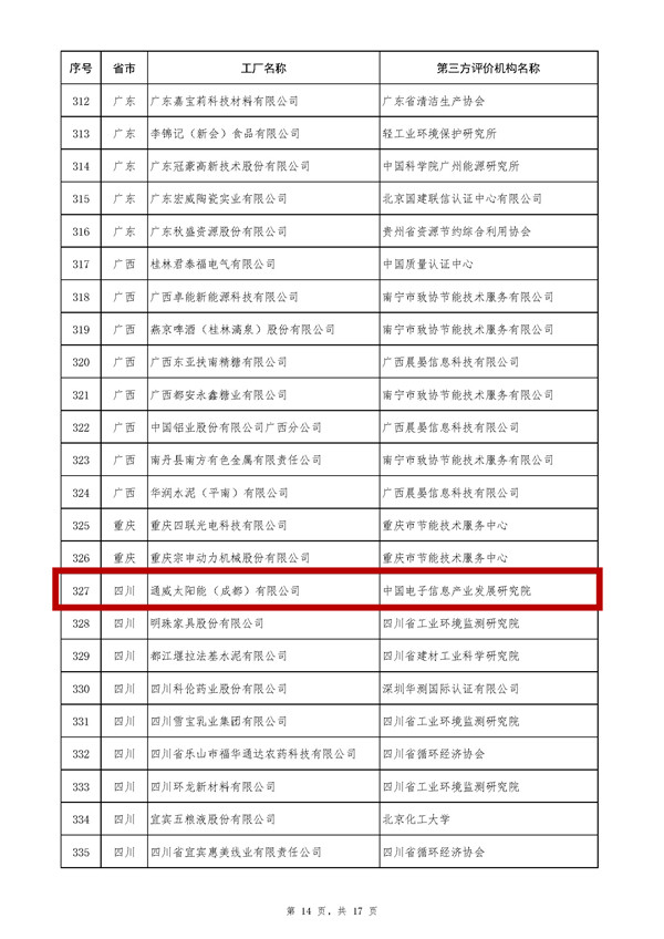 11月6日,國家工業和信息化部公布了第三批綠色制造名單,其中綠色工廠391家、綠色設計產品480種、綠色園區34家、綠色供應鏈管理示范企業21家,通威太陽能(成都)有限公司榮列綠色工廠名單。