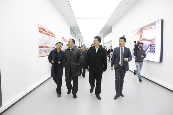 劉漢元主席陪同曹俊杰副市長一行參觀通威太陽能三期項目生產車間