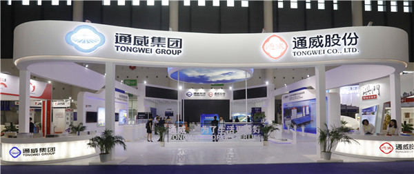 本次通威展廳面積達(dá)450m2,擁有簡(jiǎn)約高端的現(xiàn)代化設(shè)計(jì)、大氣磅礴的展廳布局,現(xiàn)場(chǎng)通過視頻影像、最新產(chǎn)品展示、VR等多媒體形式集中呈現(xiàn)了通威農(nóng)業(yè)、新能源產(chǎn)業(yè)板塊及適度多元板塊。特別突出地展現(xiàn)了通威進(jìn)入光伏行業(yè)十年來,所構(gòu)建的擁有自主知識(shí)產(chǎn)權(quán)的完整光伏新能源產(chǎn)業(yè)鏈,吸引了眾多蒞臨“一帶一路”合作館的參展嘉賓駐足參觀和交流。